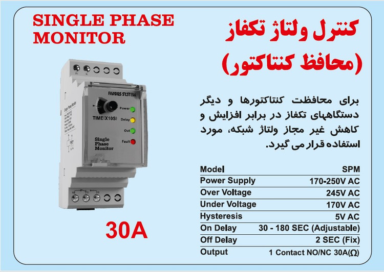 کنترل ولتاژ تکفاز (محافظ کنتاکتور) فانوس سیستم ۳۰ آمپر